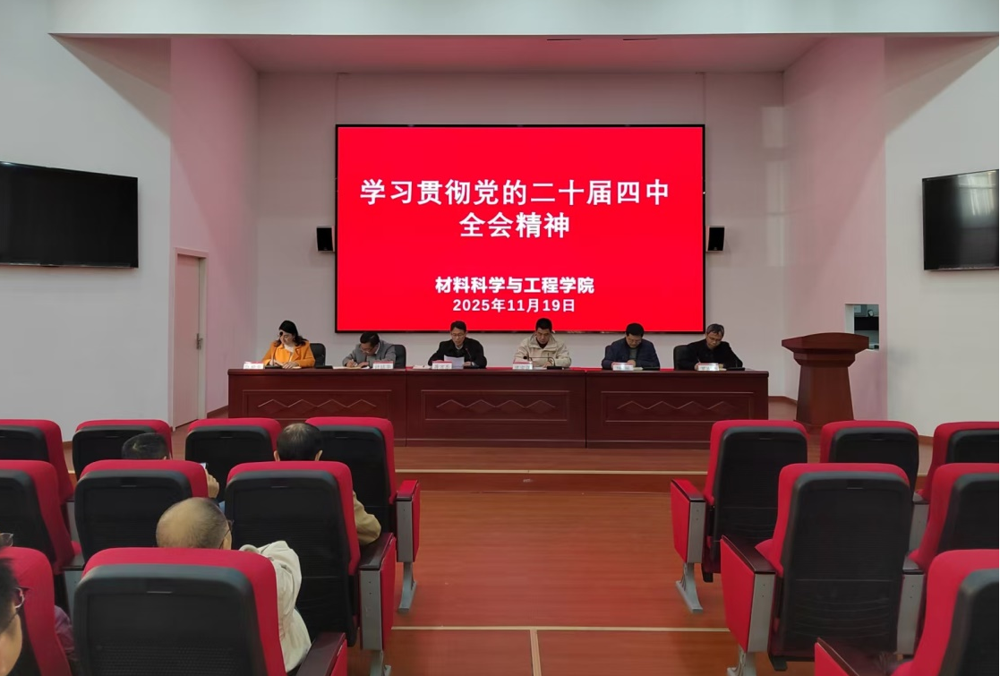 为深入学习贯彻党的二十届四中全会精神,切实把全院教职工的思想和行动统一到党中央决策部署上来,11月19日,材料科学与工程学院召开教职工大会,系统学习党的全会精神并部署贯彻落实举措。学院领导班子、全体教职工参加会议,学院党委书记蒋方乐主持会议。