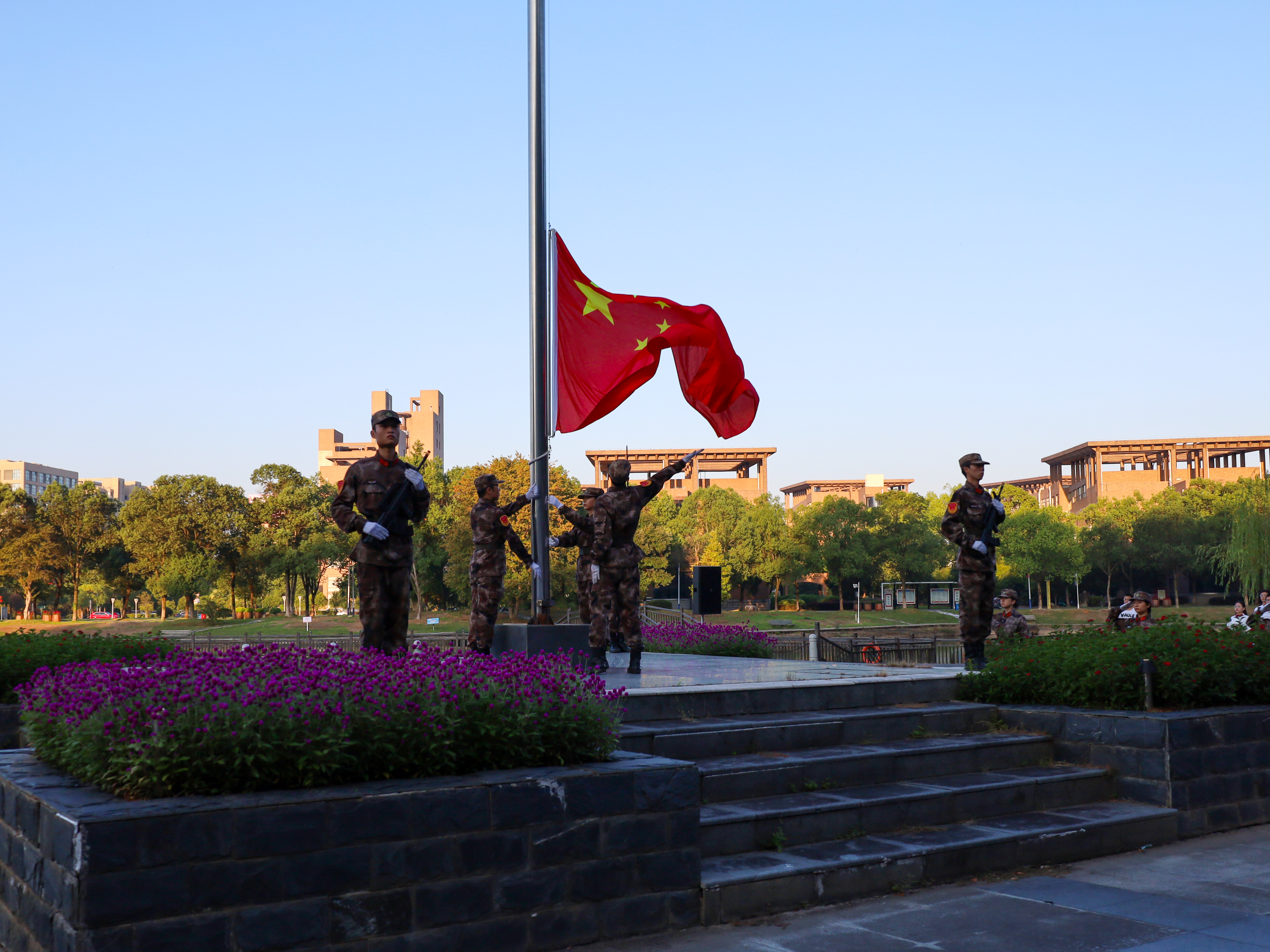 升旗仪式正式开始,英姿飒爽的学生仪仗队,迈着坚定有力的步伐,护卫五星红旗走向升旗台,伴随着庄严的《义勇军进行曲》,鲜艳的五星红旗冉冉升起,迎风飘扬,全体师生整齐列队,行注目礼,齐声高唱国歌,展现出陶大学子深厚的家国情怀与昂扬向上的精神风貌。