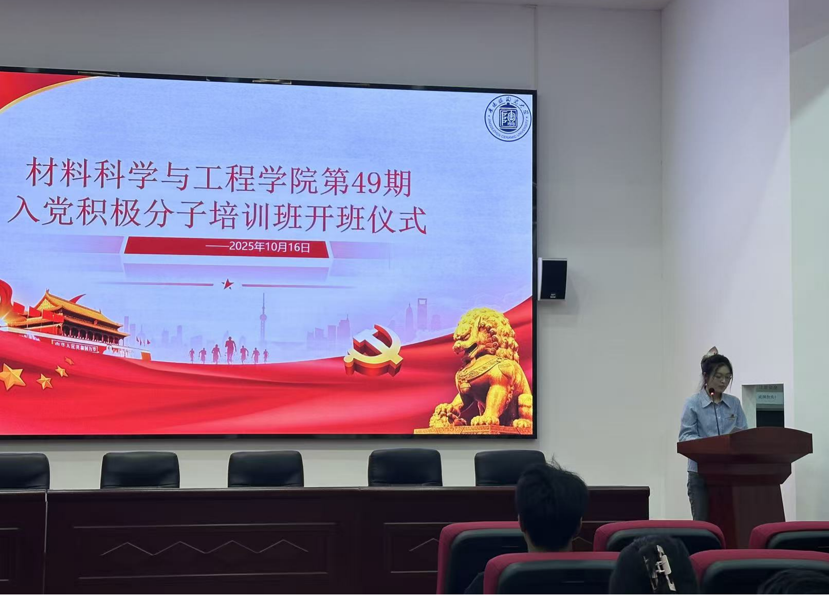 为切实加强入党积极分子的思想政治教育,提升其政治素养与理论水平,为党组织输送优质后备力量,材料科学与工程学院于10月16日在组阶03会议室隆重举行第49期入党积极分子培训班开班仪式。学院党委组织员冯永及全体培训班学员出席本次仪式。