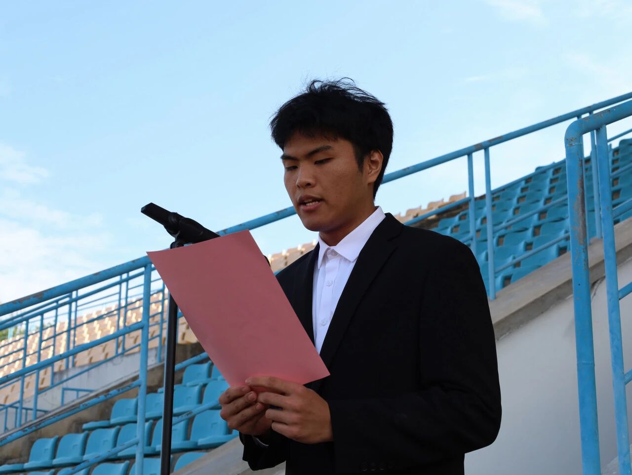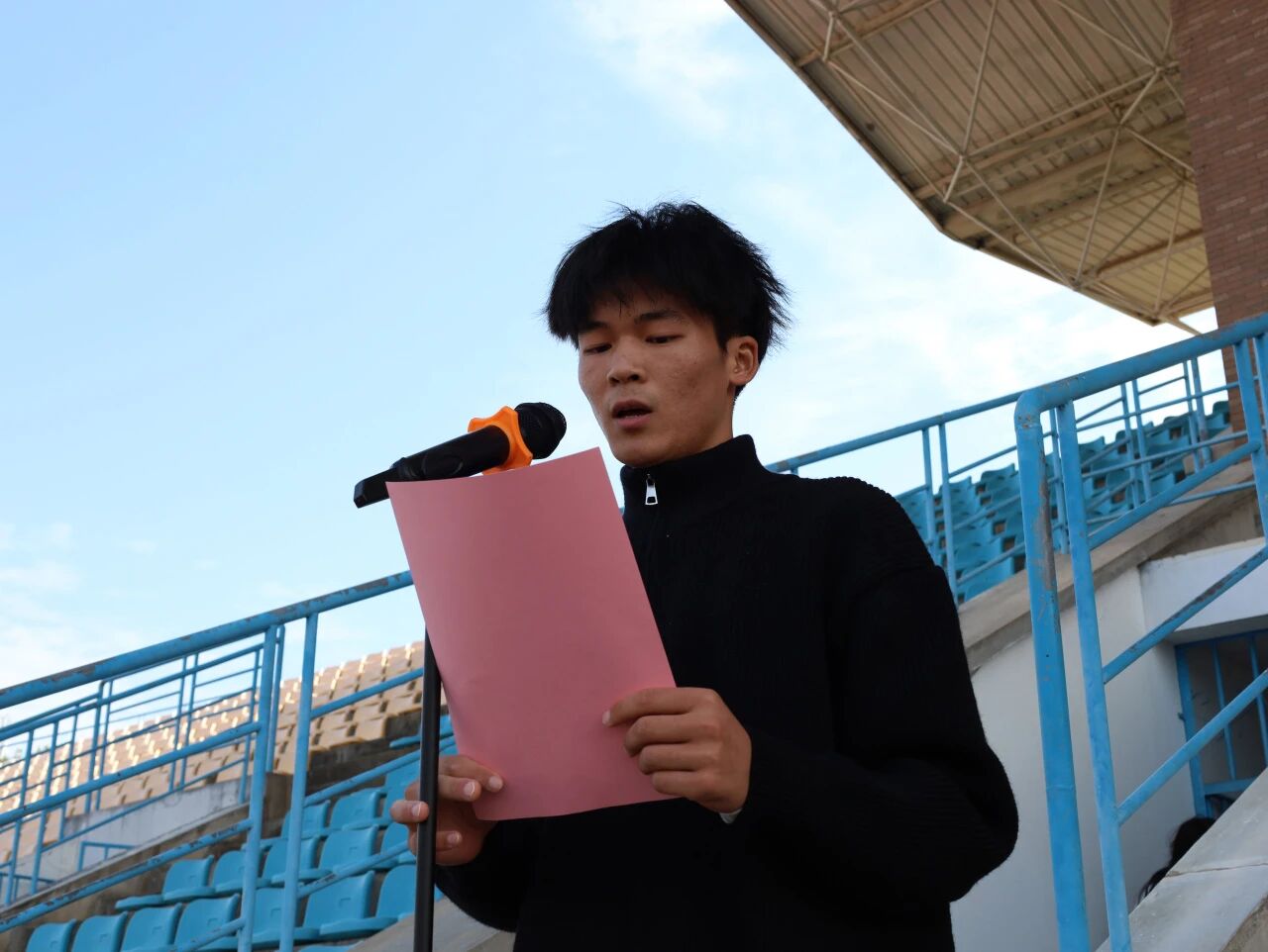 运动员代表2024级无机非金属材料工程专业李贇和裁判员代表2024级粉体材料科学与工程专业薛理嵘分别做宣誓发言。