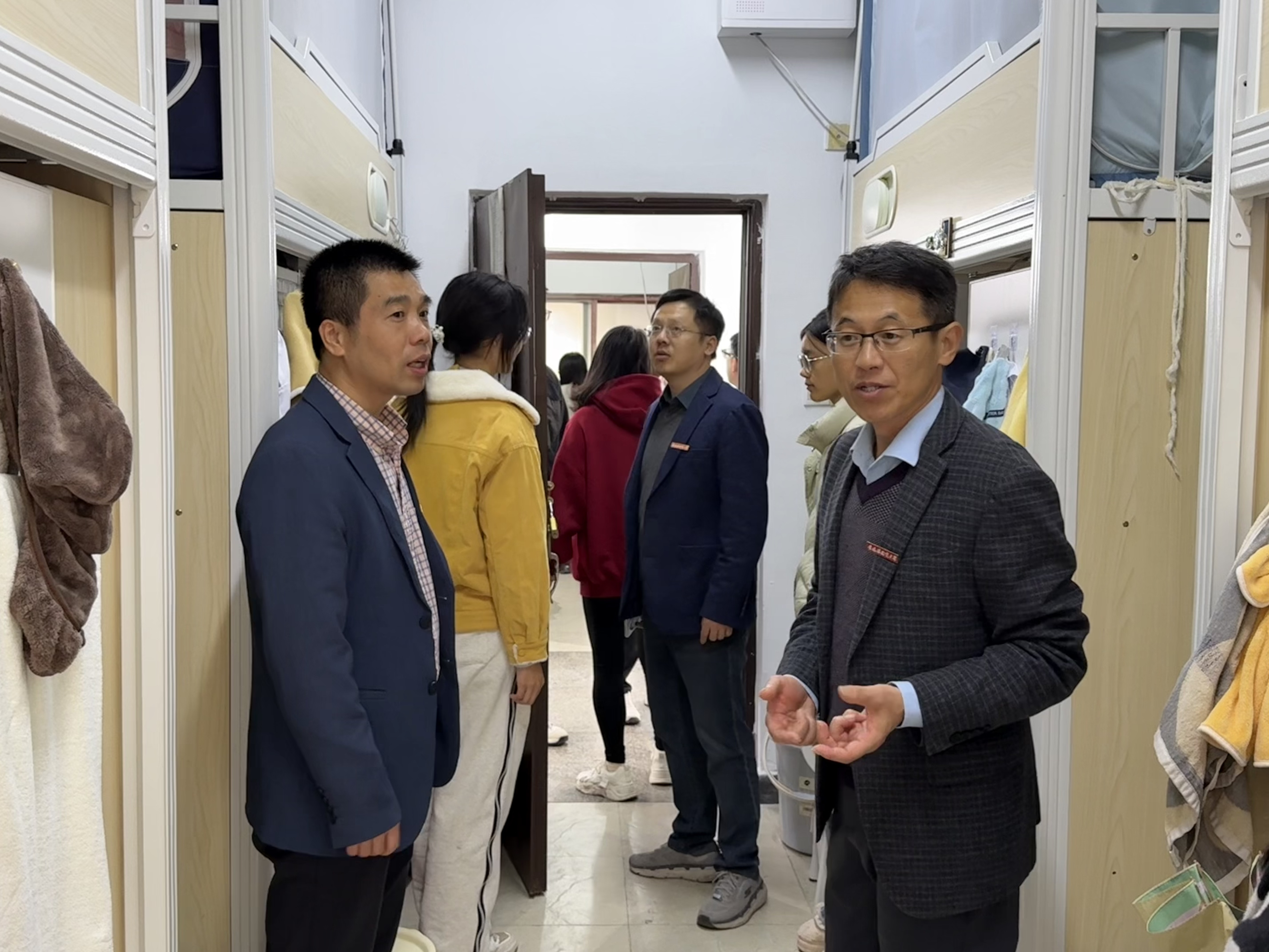 学院领导与辅导员逐间走访学生宿舍,与同学们亲切交谈,重点围绕宿舍安全用电情况、消防设施配备、卫生保洁状况、物品摆放规范,以及是否存在违规使用电器、私拉乱接电线、存放易燃易爆物品等安全隐患进行了逐一排查。从日常生活作息到宿舍人际关系,从饮食健康到课余活动,领导老师们的询问细致入微,叮嘱同学们要养成良好的生活习惯,注意用电安全,营造安全整洁舒适的居住环境,以健康的身心状态投入学习与生活。