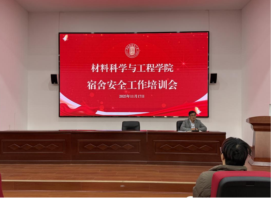 为织密校园安全防护网,强化学生宿舍安全管理,提升基层学生干部履职能力,11月17日下午,材料科学与工程学院召开宿舍安全工作培训会,全体辅导员、班长、学生会工作人员及学工助理参加会议,会议由材料科学与工程学院党委副书记、纪委书记计镇华主持。