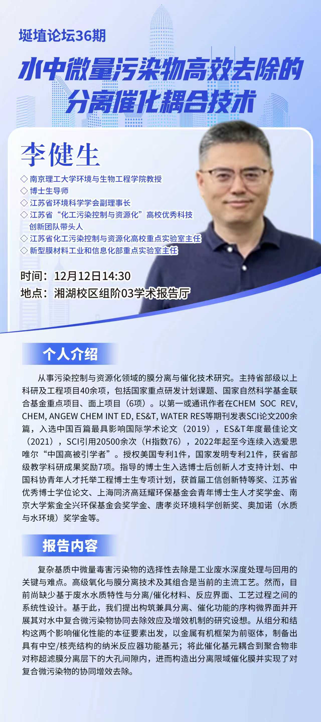 预告|【埏埴论坛】第36期|水中微量污染物高效去除的分离崖飞耦合技术