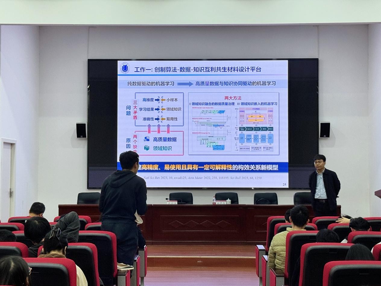 报告中,施教授还结合自身师从陈立泉院士、王鼎盛院士以及多年海外研究经历,深入浅出地分享了如何做研究、如何做学问的心得体会。他鼓励青年师生要夯实基础、勇于交叉,善于将人工智能与材料科学深度融合,同时保持对科学问题的敏锐洞察力。