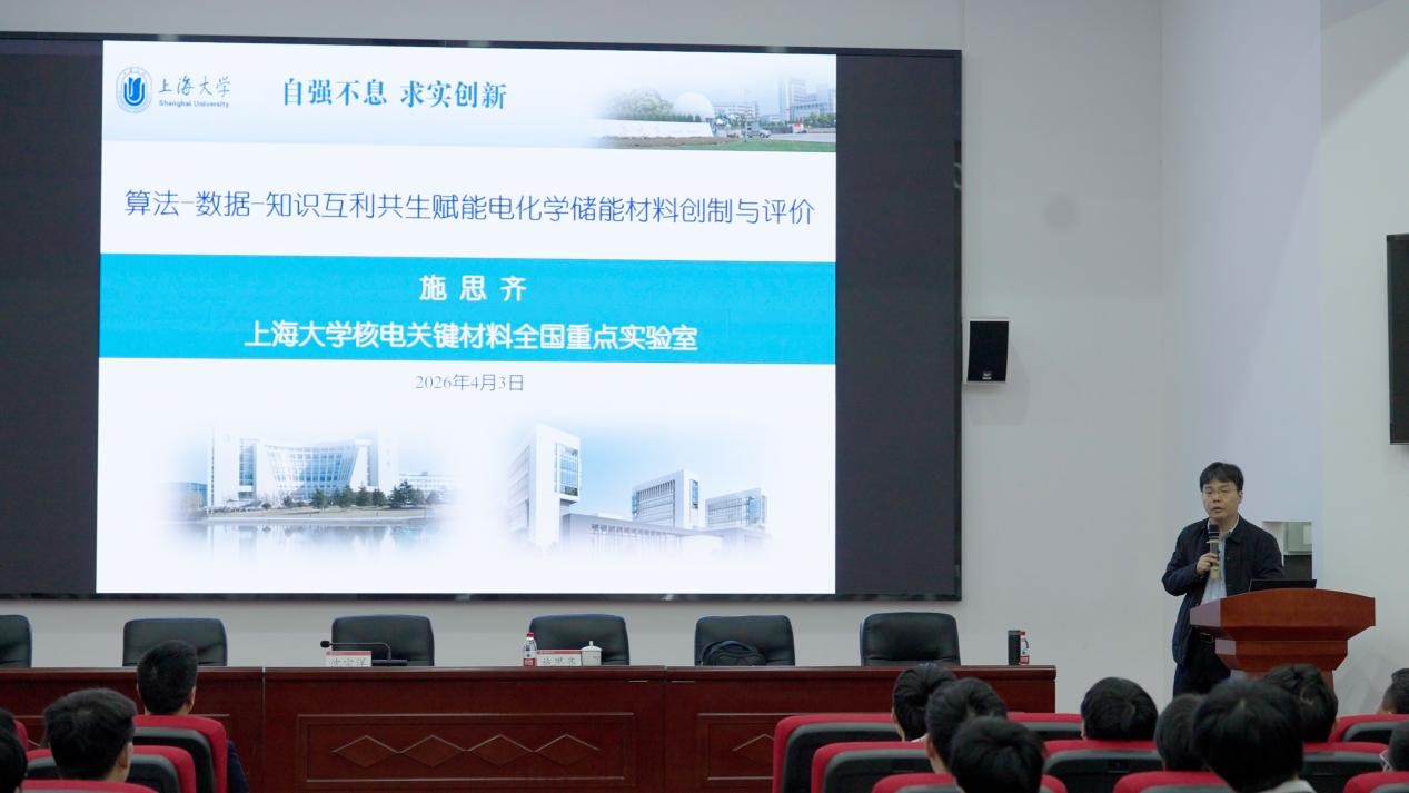 4月3日上午,上海大学施思齐教授应邀做客我校埏埴论坛,在组阶03学术报告厅作了题为《算法-数据-知识互利共生赋能电化学储能材料创制与评价》的学术报告。材料科学与工程学院和能源科学与工程学院相关专业师生到场聆听。材料科学与工程学院院长沈宗洋主持报告会。